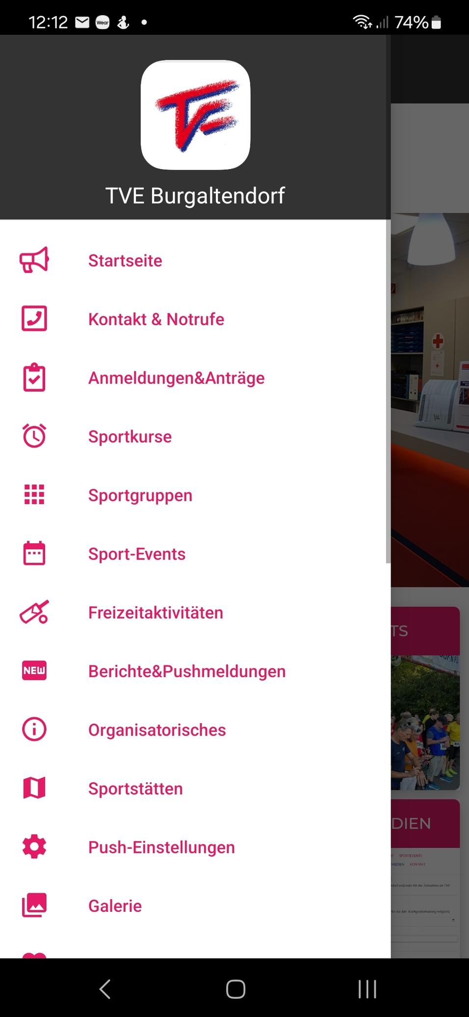 Die App "TVE Burgaltendorf" kann kostenlos aus dem "PlayStore" (eine App auf dem Smartphone) bzw. "AppStore" (eine App auf dem iPhone) heruntergeladen werden. Geben Sie dazu im PlayStore bzw. AppStore in das Suchfeld "TVE Burgaltendorf" ein und starten Sie den Installationsvorgang. Nun finden Sie auf Ihrem Smartphone/iPhone Die TVE-App mit dem TVE-Logo.