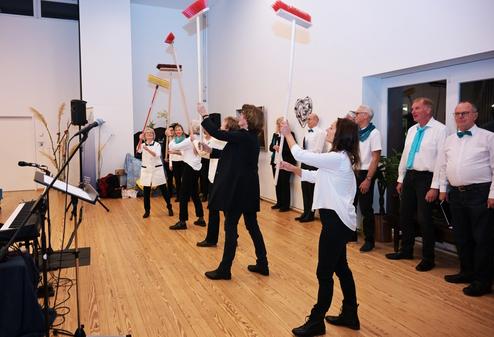 Nach dem Einlass konnten wir auch in diesem Punkt die Nervosität ablegen. Bis zur letzten Reihe füllten sich die Plätze. Und dann ging alles ganz schnell. Unser Einzug mit „Adiemus“ verursachte vielleicht schon ein kleines bisschen Gänsehautfeeling, und auch die weiteren Lieder und Bandbeiträge sorgten für gute Stimmung. Bis zur Pause verging die Zeit wie im Flug und unser Fingerfood Buffet fand reißenden Absatz. Auch im zweiten Teil, der mit einem „Besentanz“ in Anlehnung an die Rhythmusgruppe „Stomp“ begann, ging nichts schief.