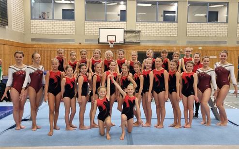 All diese Erfolge wären allerdings auch ohne unser Kampfrichter-Team nicht möglich gewesen. Bei dieser großen Zahl an Turnerinnen sind wir dankbar, auf so viele zuverlässige Kampfrichterinnen in unseren Reihen zurückgreifen und dadurch entsprechend viele Mannschaften melden zu können. Danke deshalb an Eva Beckmann und insbesondere an Tabea Bendel, Celine Rudolph und Lena Niekamp, die für uns jeweils rund acht Stunden lang als Kampfrichterinnen die Übungen der Turnerinnen bewertet haben.