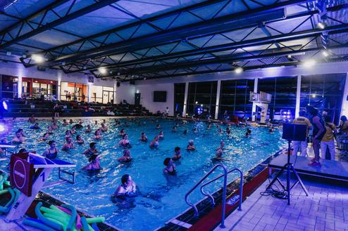 Eine tolle Veranstaltung, bei der mehrere lizensierte Aqua-Trainer acht Kurse à 30 Minuten-Programme bei fetziger Musik zum Mitmachen präsentierten.