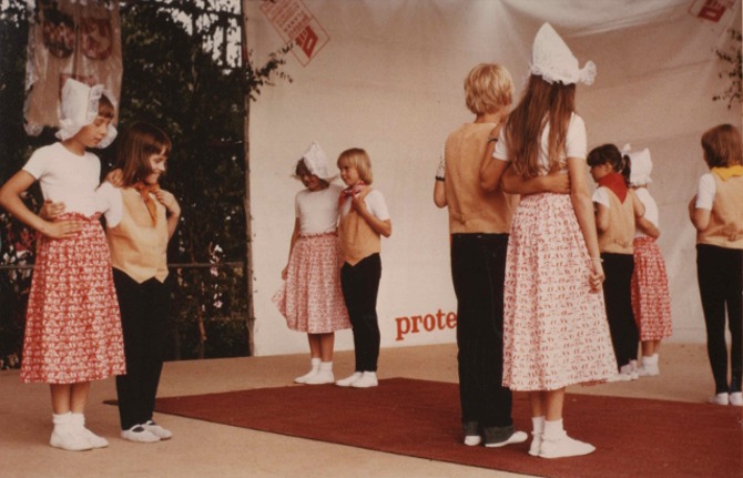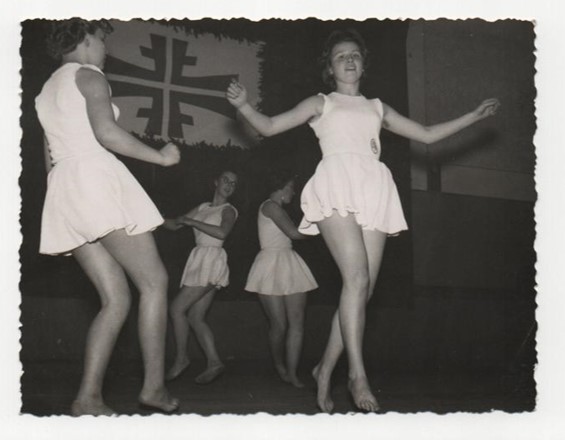 Wo gefeiert wird, da wird getanzt. Diese Aufnahme zeigt eine Tanz-Aufführung beim TVE-Turnfest 1957.