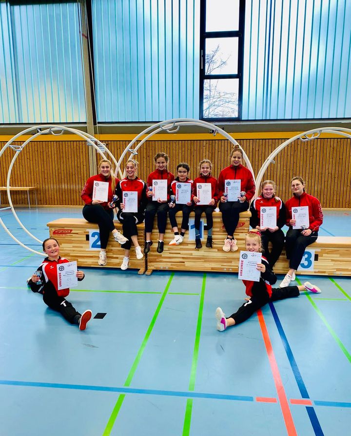Insbesondere die älteren Turnerinnen konnten von ihrer Erfahrung profitieren und zeigten, dass sich das intensive Training ausgezahlt hat. So konnten die Mannschaften in der offenen Altersklasse (16+) sowie in der Altersklasse 14/15 jeweils einen souveränen Sieg mit über 8 Punkten Vorsprung erturnen 🥇