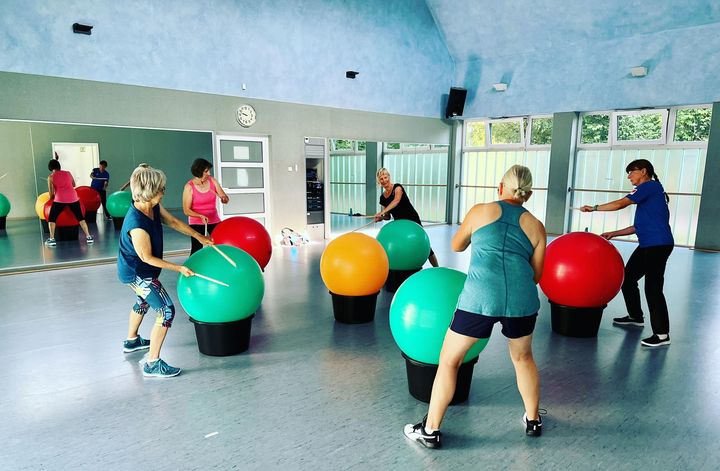 Das ganzheitliche Workout verbindet dynamische Bewegungen mit dem pulsierenden Trommelrhythmus. Koordination, Takt- und Rhythmusgefühl werden geschult. Bei den Teilnehmer*innen löst die ungewöhnliche Kombination große Begeisterung aus. Es macht gute Laune! Getrommelt wird mit Holzsticks auf Pezzibällen. Ein Cool-down und Dehnübungen runden die Stunde ab.