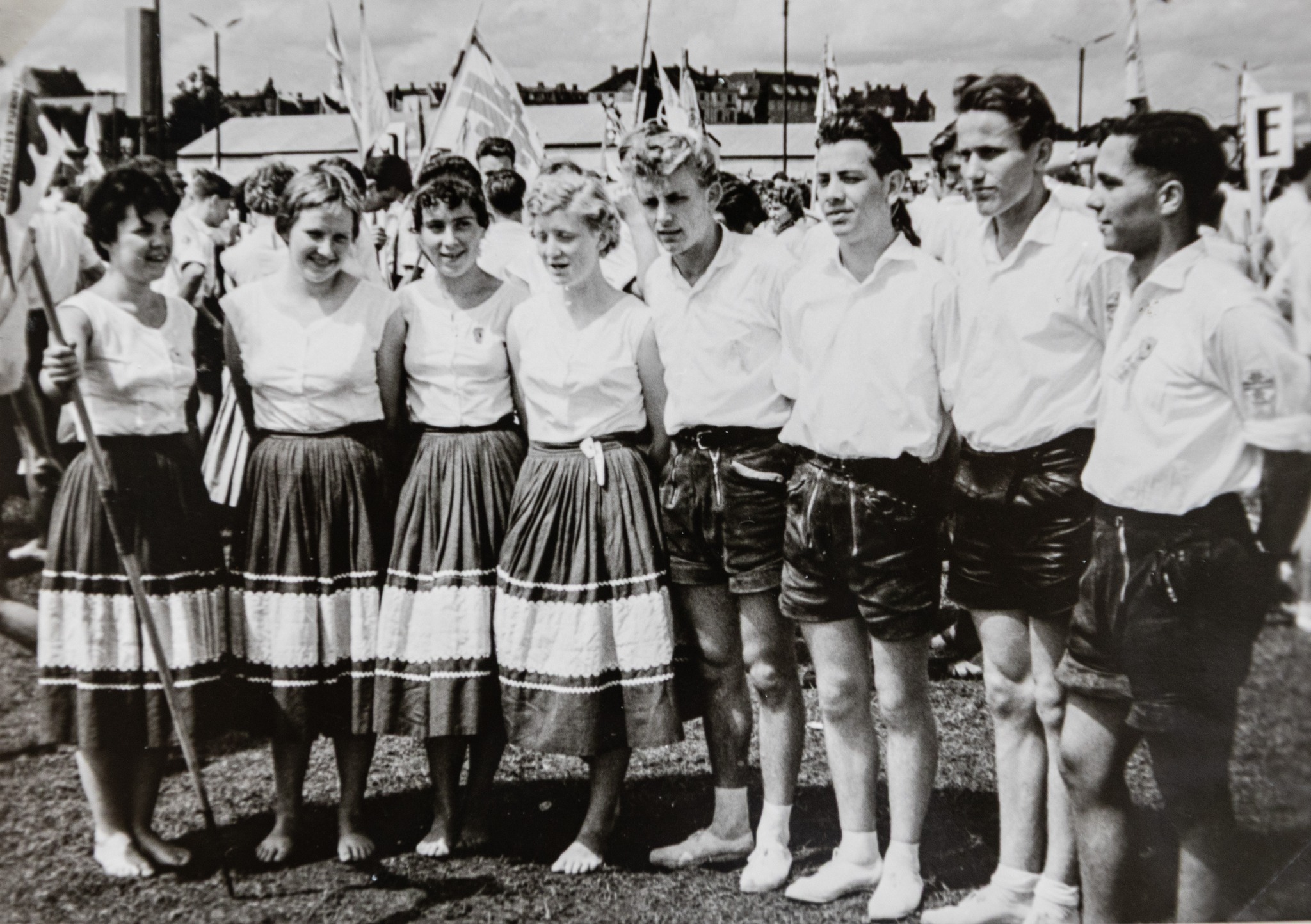 Wo gefeiert wird, da wird getanzt. Diese Aufnahme zeigt eine Tanz-Aufführung beim TVE-Turnfest 1957.