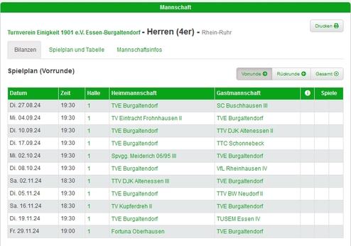 Am 27.08. hat(te) die Tischtennismannschaft, bestehend aus Torben Wagenhals, Jan-Oliver Classen, Tim Tobias Schneider, Marvin Reimann, Karsten Linnemann, Alexander Gahr, Nils Weimann und Wolfgang Bilitewski ihr erstes Spiel der Saison 2024/25 in der Gruppe 5 der 1. Bezirksklasse Rhein-Ruhr.