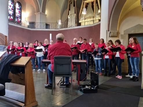 Montag, 29. April 2024, 18.15 h, Treffpunkt Comeniushalle, Chor-Kleidung blau, weiß, rot.