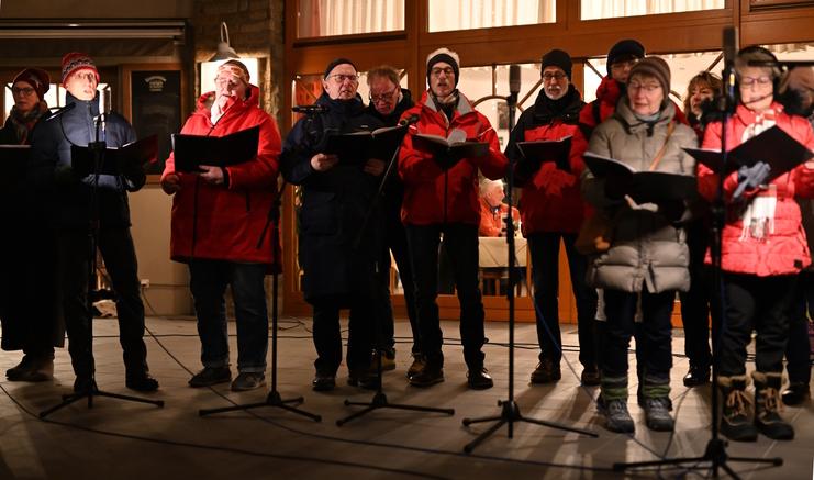 Bei Gesprächen im Vorfeld zeigten sowohl Rolf Siepmann vom Heimat- und Burgverein als auch Peter Becker vom Kolpingverein ihre Freude darüber, dass sich die tonARTisten als Burgaltendorfer Chor im TVE Burgaltendorf bereit erklärt hatten, an dieser Veranstaltung teilzunehmen. Nach letzten Absprachen für die Technik trafen sich alle Chormitglieder am 03.12. um 17.30 h auf der Brücke zu einem kleinen Fotoshooting. Der Carl Human Kinderchor war zeitgleich noch „In der Weihnachtsbäckerei“ tätig, und anschließend brachte der Nikolaus den erwartungsvollen Kindern eine süße Leckerei. Dann gab der Hl. Mann schließlich den Startschuss für die Turmbläser, die in eisiger Kälte vier Stücke spielten. Danach kam der Chor zum Einsatz. In der folgenden Viertelstunde wechselten sich die Bläser mit den tonARTisten ab und brachten so die noch verbliebenen Großen ein bisschen in adventliche Stimmung. Es war eine schöne, traditionelle Veranstaltung vor der malerischen Kulisse der Burg und für die tonARTisten ein Heimspiel, das Freude bereitet hat, wenn auch die äußeren Bedingungen extrem waren. Mit einem heißen Getränk, unter einer Kuscheldecke, bei einem Feuer im Kamin o.ä. mussten sich sicher anschließend viele zuhause aufwärmen.
