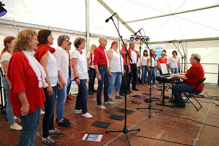 Da war die Freude groß, und der Sound von 30 Sänger*innen war überwältigend. Der Raum wurde erfüllt von einem flotter Swing, einem romantisches „Wonderful World“, einem Kanon mit unterstützender Choreo und einer Erinnerung an Zeiten, wo man noch „Hello Dolly“ trällerte.
